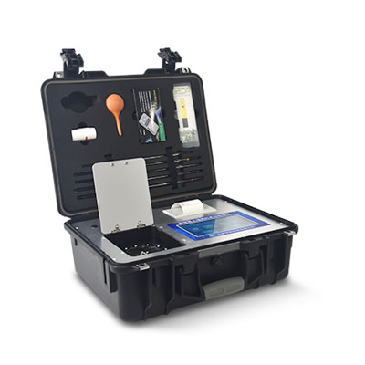 11、高強(qiáng)度PVC工程塑料手提箱設(shè)計(jì),堅(jiān)固耐用,便于攜帶,供電方式為交直流兩用,可野外流動(dòng)測(cè)試配套成品藥劑。