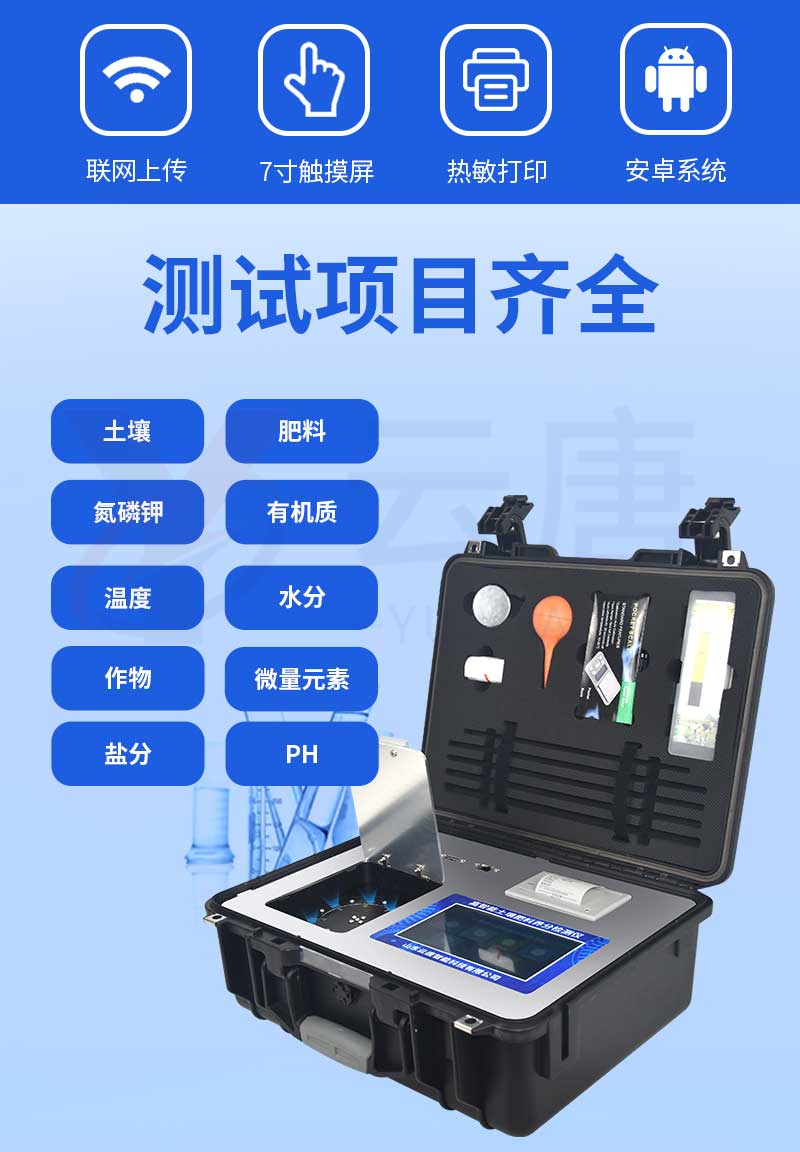 配套齊全:該儀器集藥、器、儀為一體,攜帶方便,相當(dāng)于一個(gè)小型移動實(shí)驗(yàn)室,無需用戶自配附件,亦可靈活野外流動測試。適于農(nóng)業(yè)服務(wù)部門或農(nóng)資經(jīng)銷商、高教院校、科研院所、合作社、肥料廠商、大種植戶測土施肥和鑒別肥料真假及環(huán)保檢測應(yīng)用。