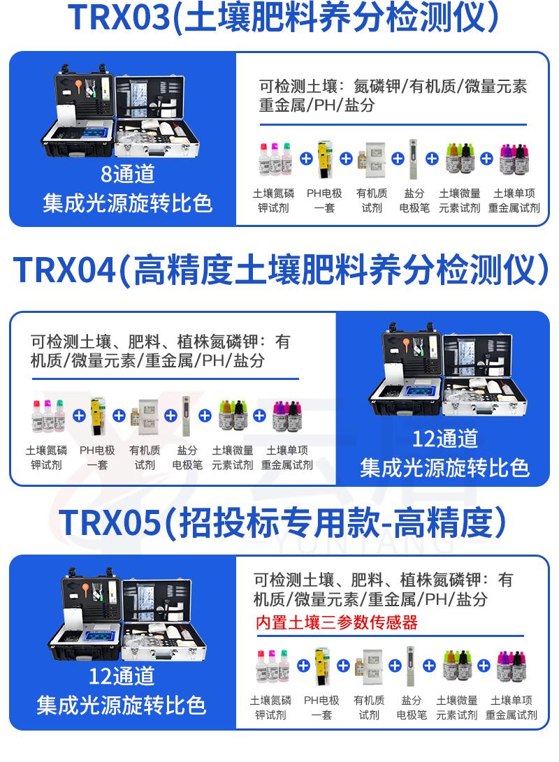 1、土壤養(yǎng)分:●銨態(tài)氮、硝態(tài)氮、速效磷、速效鉀、有機(jī)質(zhì)、全氮、全磷、全鉀、pH值、含鹽量、堿解氮等;●中微量元素:鈣、鎂、硫、鐵、錳、硼、鋅、銅、氯、硅等。