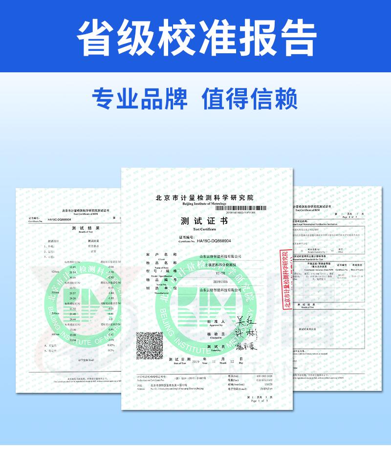 5、檢測過程中內(nèi)置校準(zhǔn)功能,智能恒流穩(wěn)壓,光強(qiáng)自動校準(zhǔn),確保檢測準(zhǔn)確度,取得中國計(jì)量科學(xué)研究院的《校準(zhǔn)證書》。