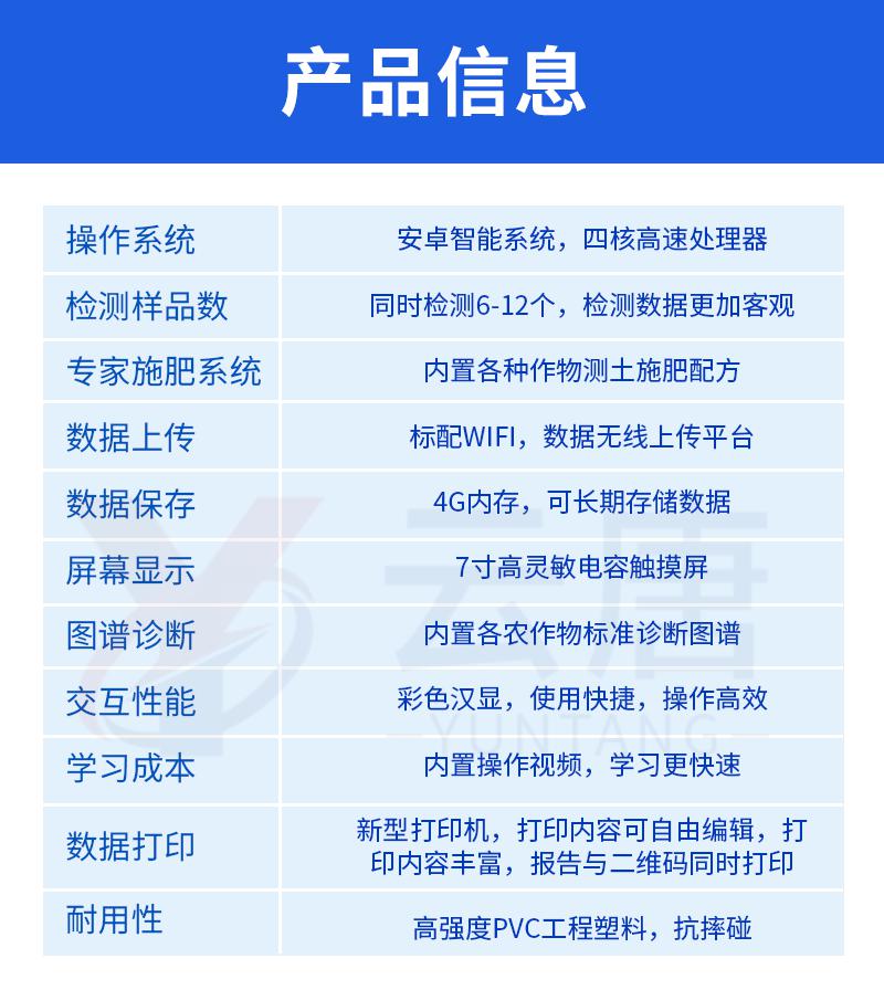描述:高智能多參數(shù)土壤肥料養(yǎng)分速測儀安卓智能操作系統(tǒng),采用更加**和人性化操作,儀器標(biāo)配wifi聯(lián)網(wǎng)上傳、···