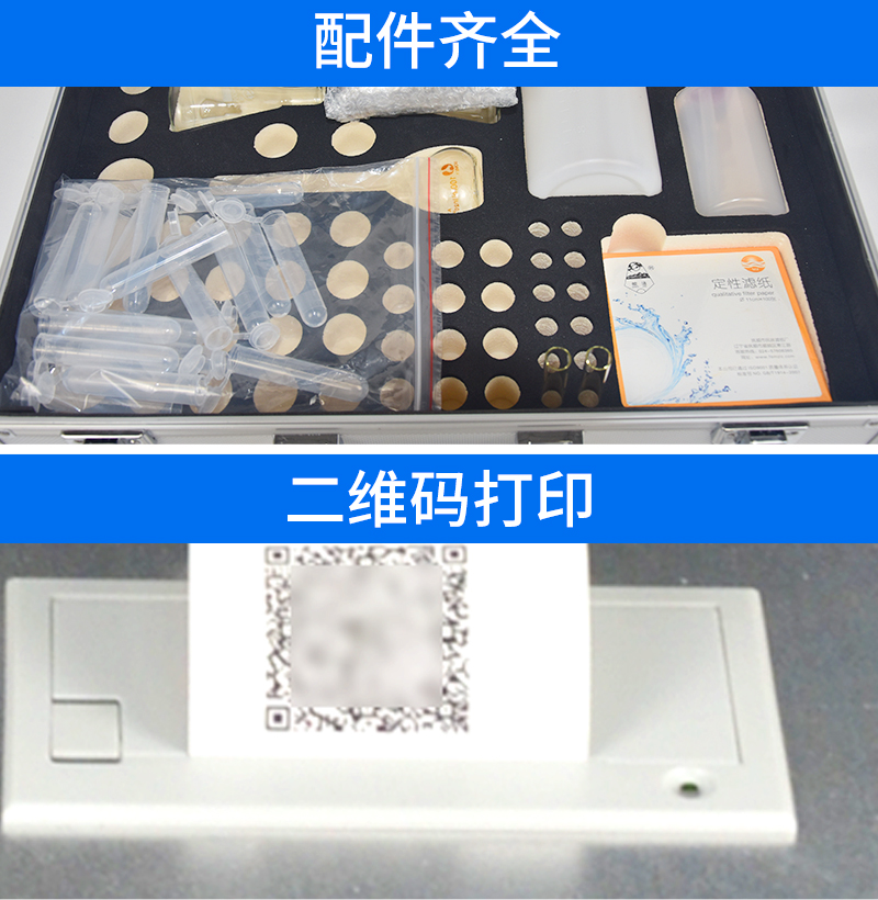 18、內(nèi)置新一代高速熱敏打印機(jī)(無需色帶),打印內(nèi)容包含:檢測單位、檢測人員、檢測項(xiàng)目、通道號、吸光度、養(yǎng)分含量(mg/kg)、檢測時(shí)間、以及二維碼等信息