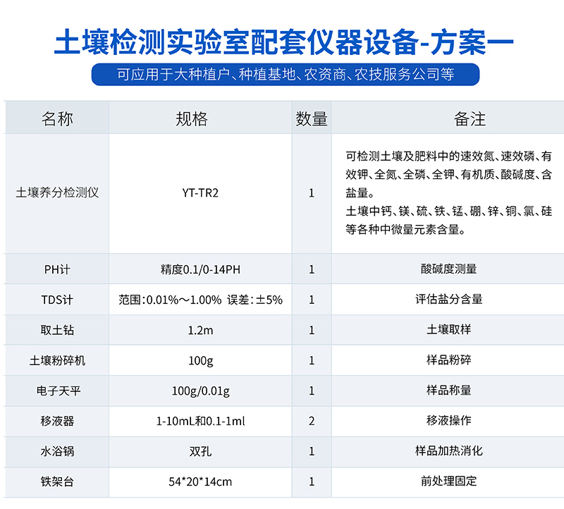 | 2 | PH計(jì) | 1支 | 2 | 氮磷鉀有機(jī)質(zhì)試劑 | 1套 |